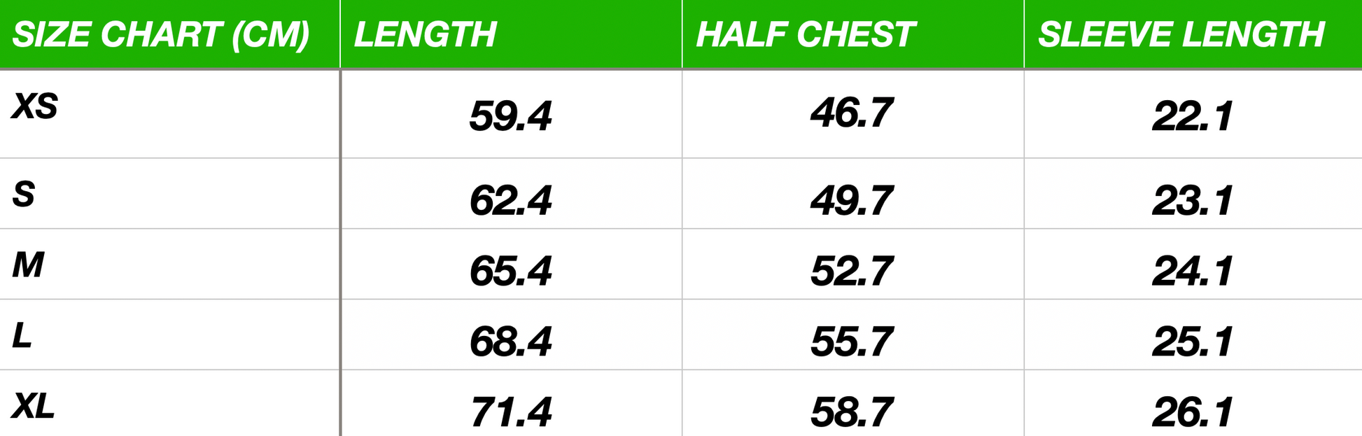 DIMENSIONS: SEE SIZE CHART IN PRODUCT PHOTOS